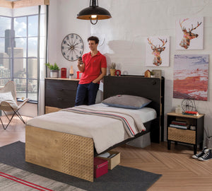 Кровать Trio Line размером 100х200 см и 120х200 см играет активную роль в обеспечении комфортного сна молодых людей. Благодаря функциональному и стильному дизайну она создает в жилом пространстве молодых людей более спокойную и умиротворенную атмосферу. Зарядное устройство с двумя входами USB, расположенное у кровати, - одна из самых ценных функций для поколения, растущего в тесном контакте с технологиями. Место за изголовьем и тканевый карман для мобильного телефона рядом с кроватью - это места, где можно разместить личные вещи, такие как мобильные телефоны, планшеты, книги и ручки. Мягкое изголовье с тканевой обивкой делает кровать удобной даже в положении сидя.